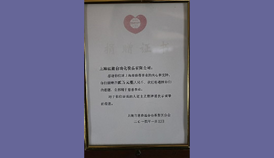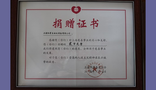 2014年,上海紅箭自動化設備有限公司為上海市慈善基金會捐款